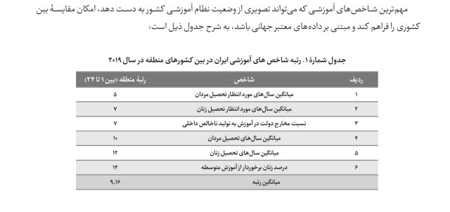 مقایسه ایران با کشورهای منطقه بر اساس سند چشم انداز بیست ساله کشور در سال ۲۰۱۹ 72 - مقايسۀ تطبيقي وضعيت شاخص_هاي آموزشي 14-10-99
